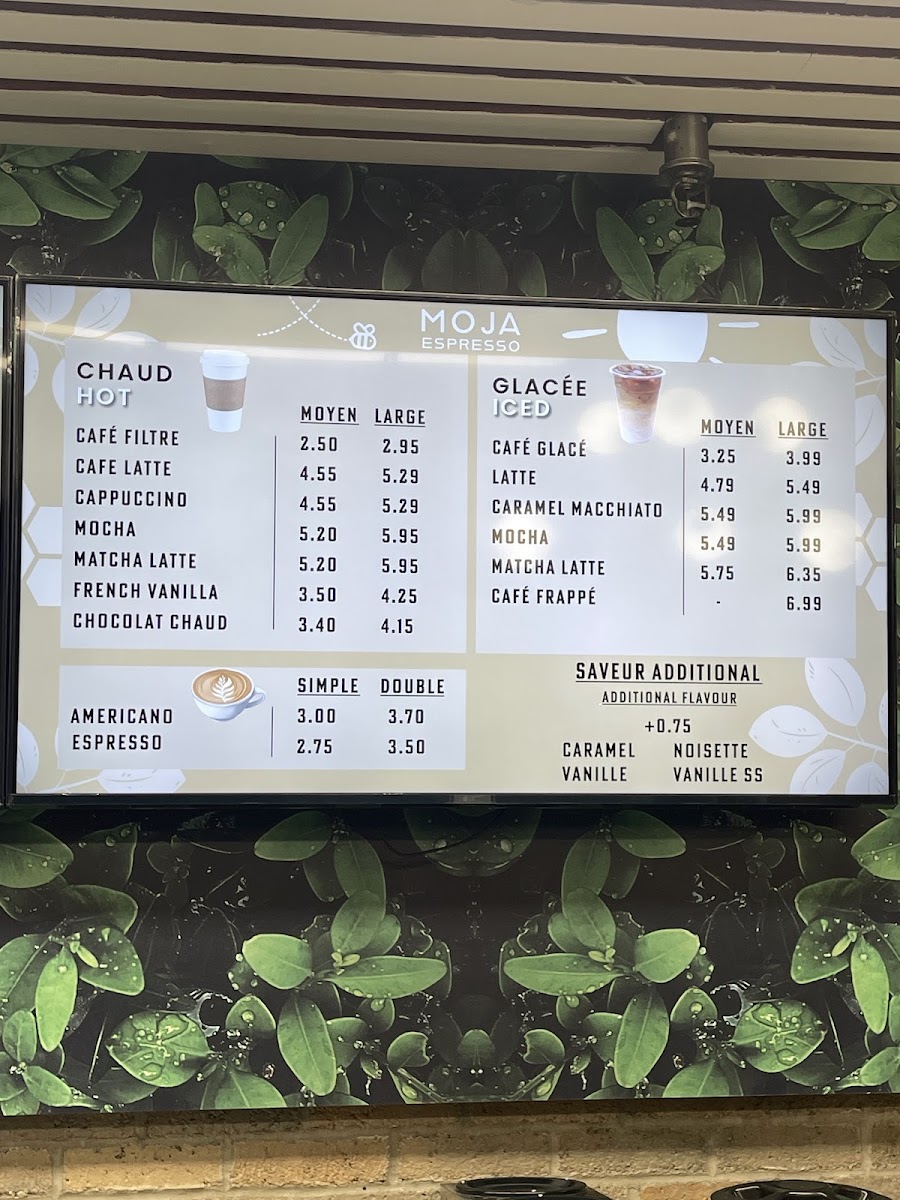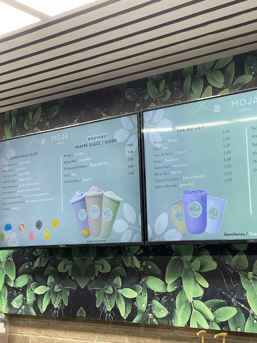 The menu at Moja Bubble Tea Café offers a variety of beverages primarily focused on bubble tea, alongside coffee and café-style drinks. This selection caters to those looking for refreshing tea-based options with different flavors and toppings, including fresh bubbles and jelly add-ons. Additionally, the menu features coffee and iced frappé drinks suitable for casual coffee breaks or light refreshments.